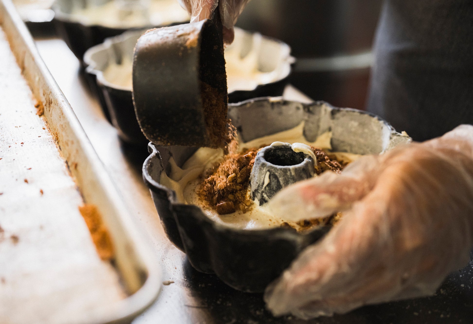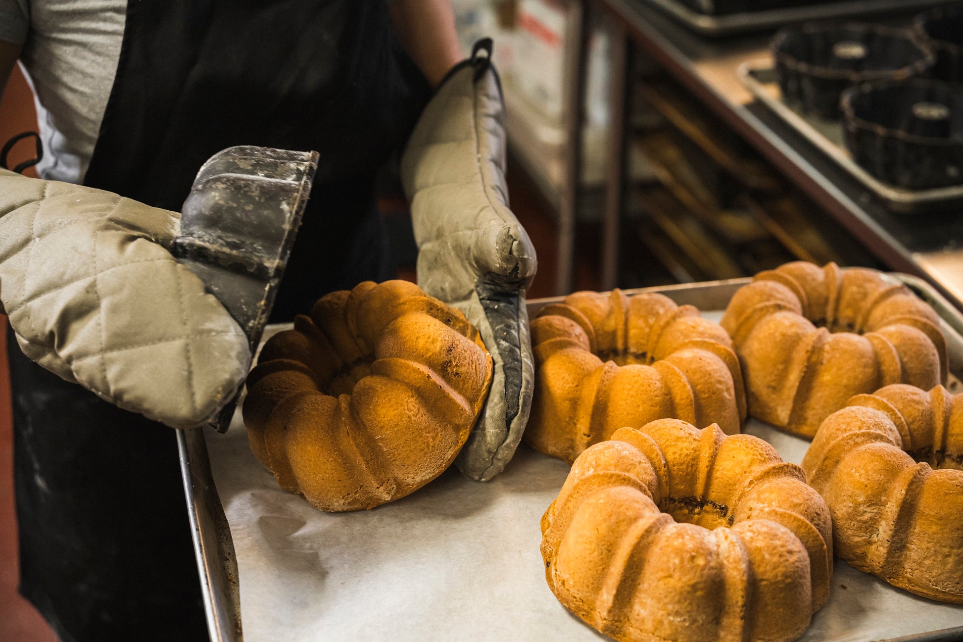Our cakes contain dairy. Pecans and peanuts are used in some recipes. Machinery is thoroughly cleaned between all nut-containing products and peanut items are not produced on the same day as coffee cakes. Please thoroughly review ingredient lists on product pages to make sure you are not at risk and contact us with additional questions.